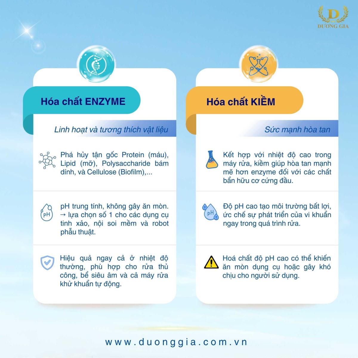 - Rửa tự động: Kết hợp giữa Enzyme và Kiềm Nhẹ giúp tối ưu hiệu quả rửa, mà vẫn đảm bảo an toàn cho dụng cụ.