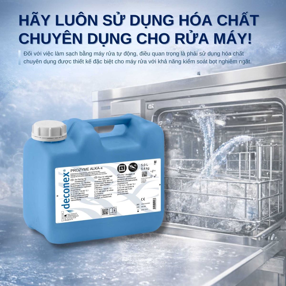 -> Đối với việc làm sạch bằng máy rửa tự động, điều quan trọng là phải sử dụng hóa chất chuyên dụng được thiết kế đặc biệt cho máy rửa với khả năng kiểm soát bọt nghiêm ngặt.