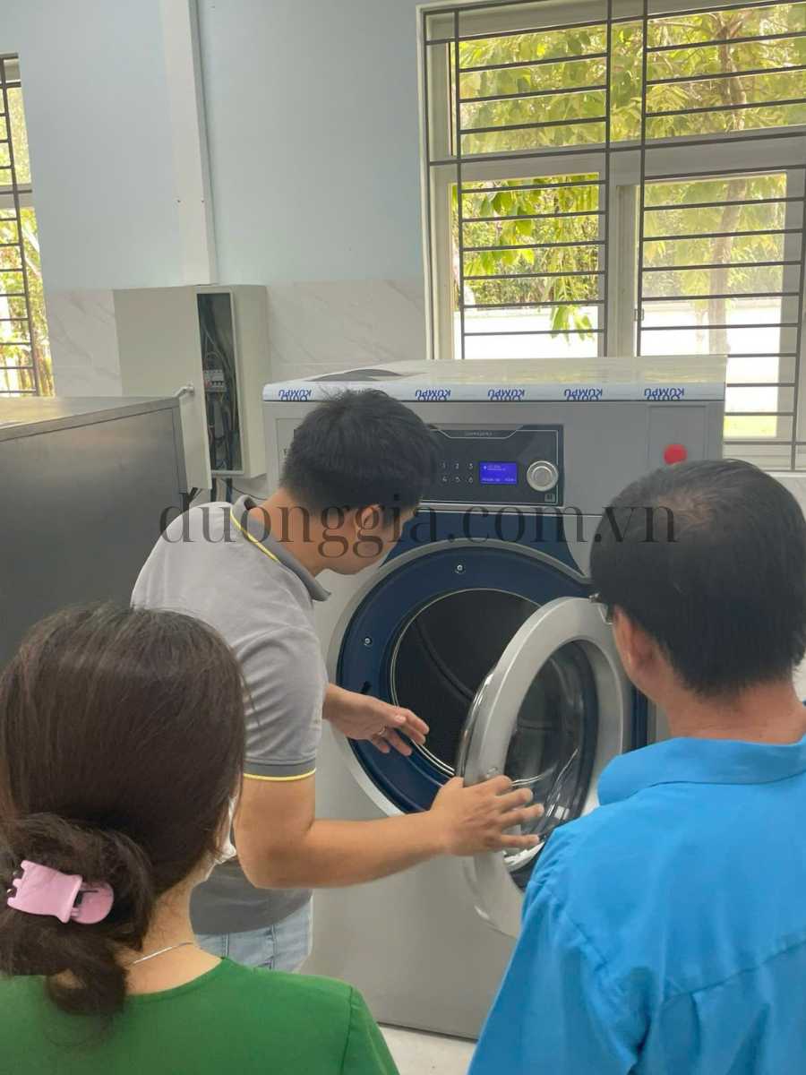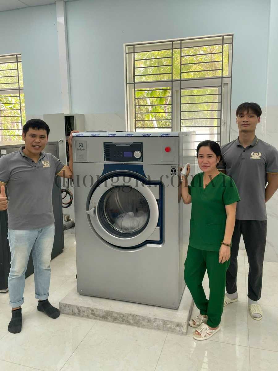 Recently, Duong Gia completed and handed over the Electrolux industrial washer and dryer system at the Dau Tieng District Medical Center, ensuring stable operation, energy efficiency, and strict compliance with medical linen processing standards.