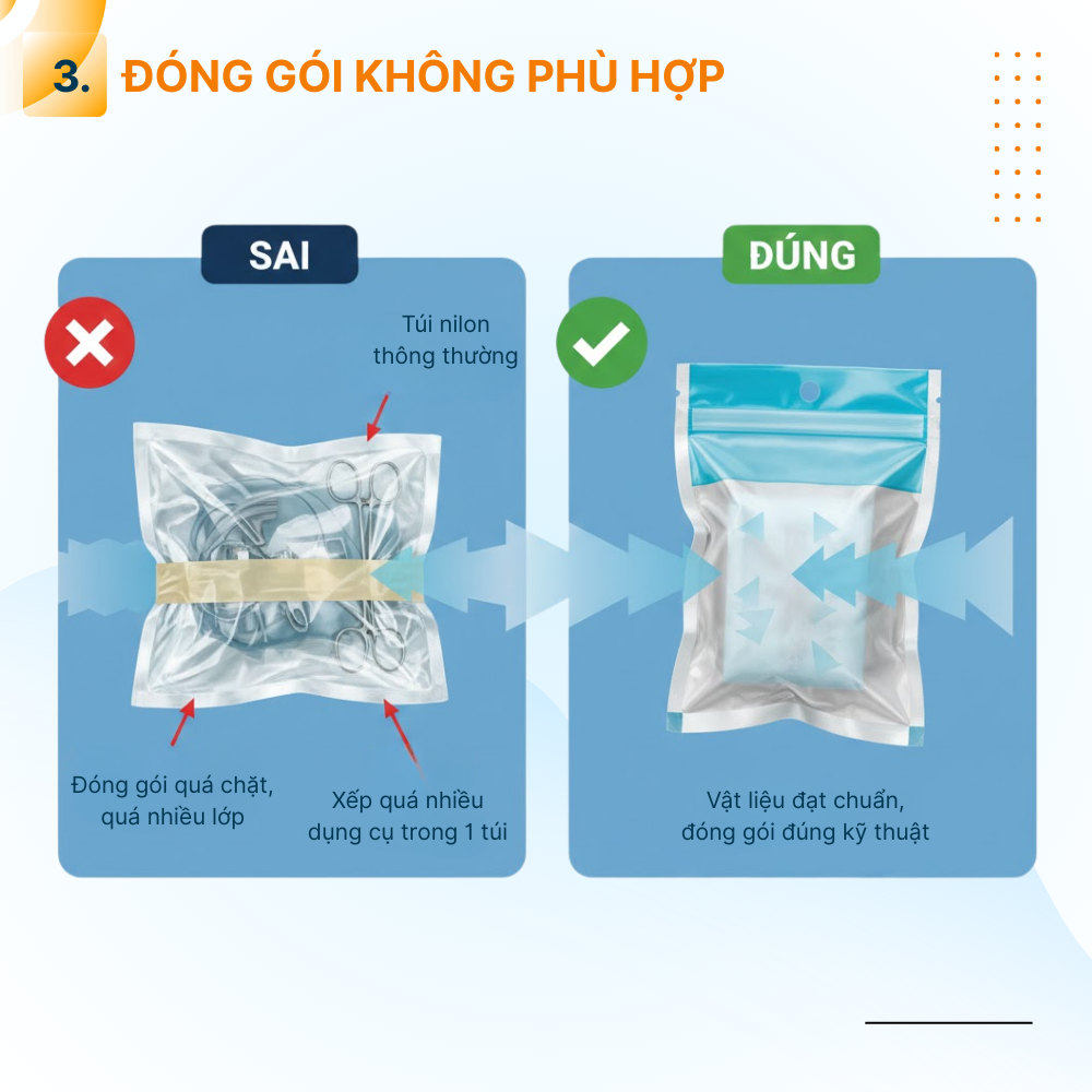 3. Đóng gói không phù hợp: ngăn ngừa sự xâm nhập của chất tiệt khuẩn và hơi nước